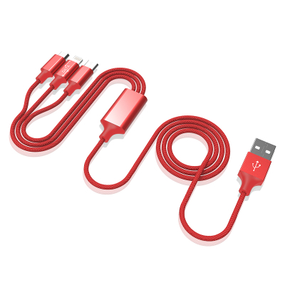 乐默LOOMOO编织绳一拖三数据线 LCB-109 红色