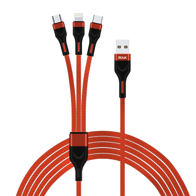 柔刻DC301【100W超级闪充】三合一数据线充电线一拖三适用苹果安卓T中国红(单位:条) 红色