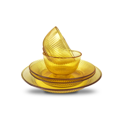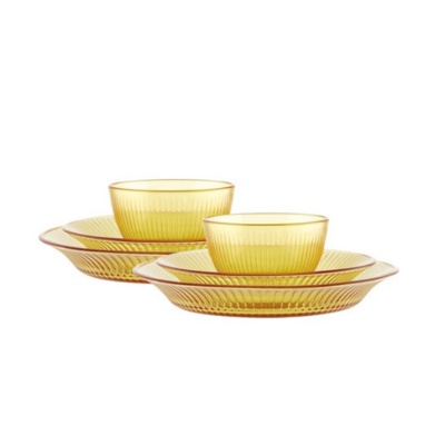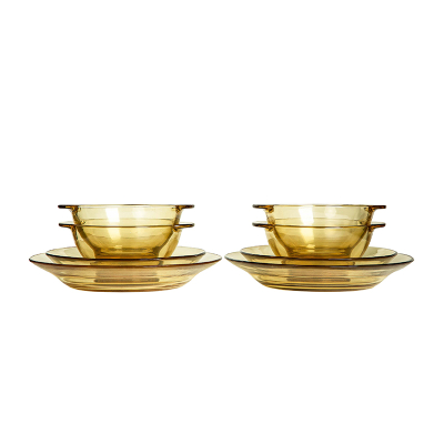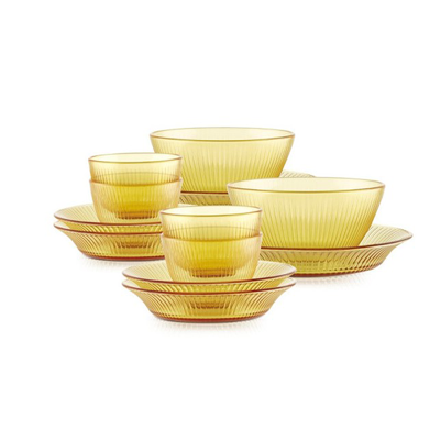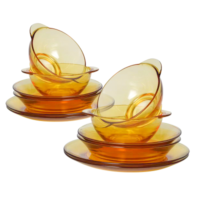 Visions琥珀色餐具晶莹系列16件组(8个小碗+4个深盘+4个平盘) 琥珀色