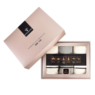 金号/清然/系列HY1118 三条毛巾礼盒装(单位:盒) 白灰混色