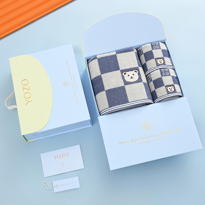 优竹世家YOZO新疆长绒棉5A抗菌A类毛巾3条装礼盒--本色熊-1 混色