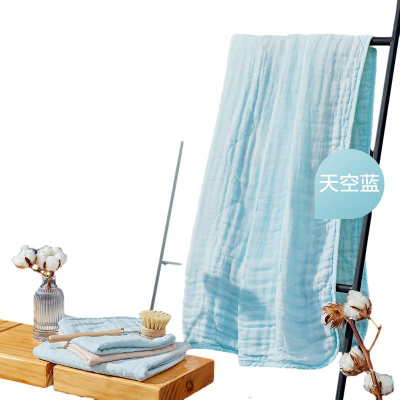 全棉时代4层水洗纱布浴巾 90CM×160CM 天空蓝 1条 蓝色
