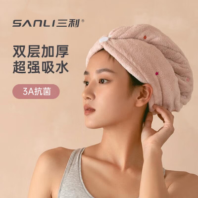 三利双层加厚干发帽 H072(袋装) 粉色