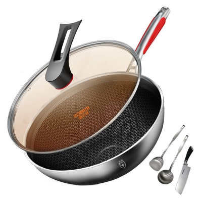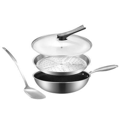 【yispot易铂】莱诺炒锅四件套YP-9010三层钢304食品级不锈钢 不锈钢色