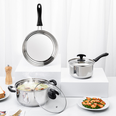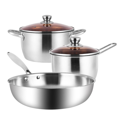 【yispot易铂】诺尔恰三件套锅YP-9007奥氏体不锈钢32cm炒锅+20cm汤锅+16cm奶锅 不锈钢色