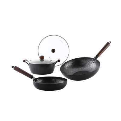张小泉精铁雪波纹锅具三件套C35423000(单位:套) 黑色