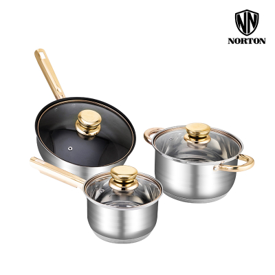NORTON卡尼亚轻奢套装汤锅22CM+奶锅16CM+煎锅26CM(单位:套) 不锈钢色