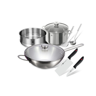 双立人锅具套装不锈钢炒锅汤锅蒸笼切菜刀水果刀锅铲汤勺 厨具百年经典40120-032-922 不锈钢色