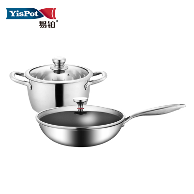 易铂 特卡斯两件套 YP-9018 30cm炒锅+20cm汤锅 不锈钢色