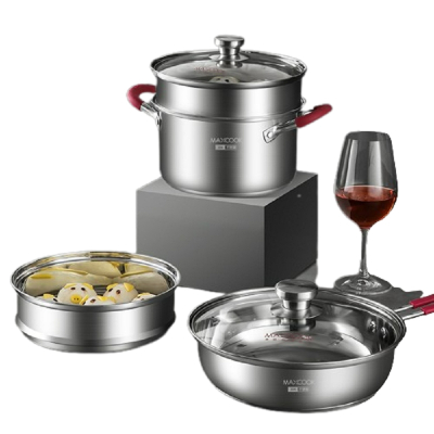 美厨“好运连连”锅具套装(三件套) MCLP-609 不锈钢色