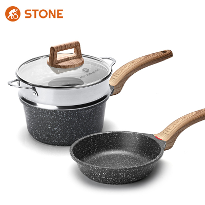 斯密欧(semreo)MR-602彼得曼麦饭石三件套厨具套装汤锅炒锅深煎锅韩式料理锅 黑色