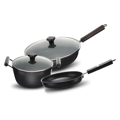 Debo德铂富兰克林DEP-701无涂层铁锅套装锅 黑色