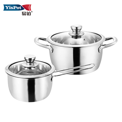 【yispot易铂】梅特曼两件套锅16cm奶锅+20cm汤锅奥氏体不锈钢YP-8011 不锈钢色