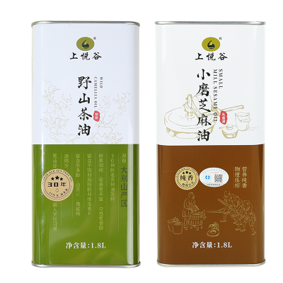上悦谷 小磨芝麻油1.8L+30年老树茶油1.8L混搭礼袋装 松石绿
