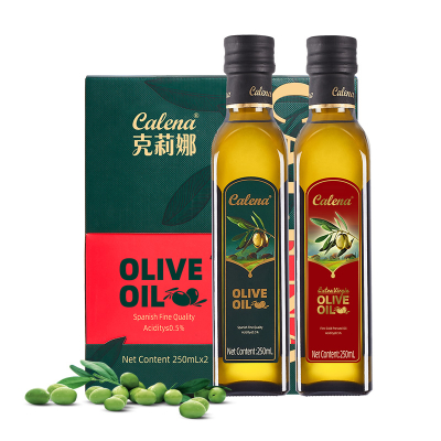 克莉娜纯正橄榄油西班牙原油进口250ml*2瓶礼盒装 特级+纯正250ml组合装绿礼盒
