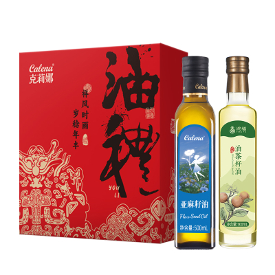 克莉娜 新春油礼(亚麻籽油+油茶籽油/ 500ml*2)单位:盒 亚麻籽油+油茶籽油 500ml*2礼盒