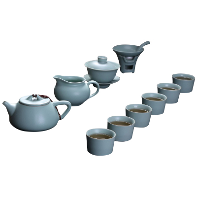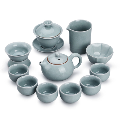 金镶玉 功夫茶具套装 12头雅瓷套装 水蓝色