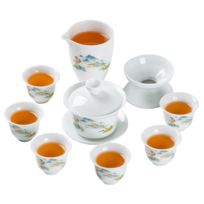 金镶玉 茶具套装 湖光山色茶具套组 本白色