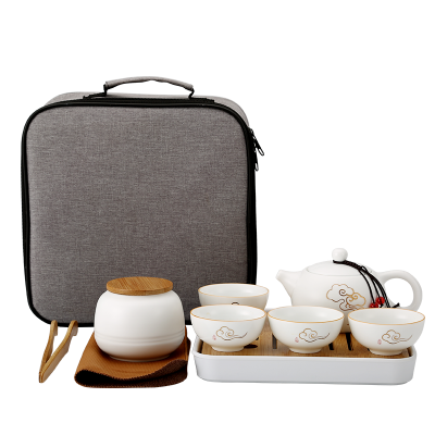 常生源(CHANGSHENGYUAN)金镶玉 祥云如意旅行茶具套装 本白色