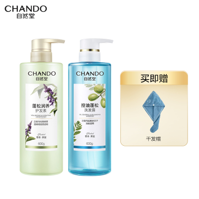 自然堂(CHANDO)控油蓬松洗护组合(洗发露600mL+护发素600mL)【送温暖专享】(含干发帽·1个)单位:瓶 水蓝色
