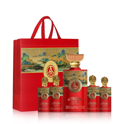 五粮液天下酒仓宜宾出品 大好河山 52度 浓香型白酒 500ml*1瓶+125ml*4瓶礼盒装 枫叶色