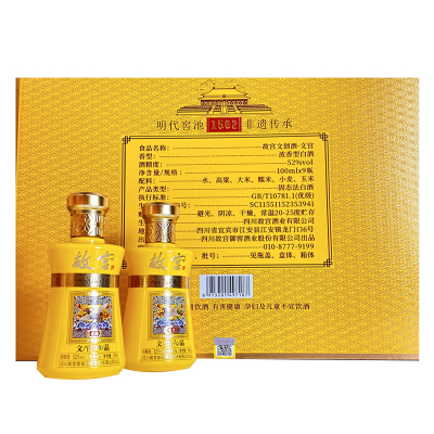 故宫御窖酒 1562 故宫文创酒文官 52度浓香型白酒 礼盒装 100ml*9瓶