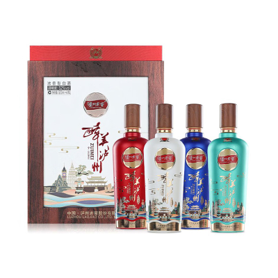 泸州老窖股份出品醉美泸州金色旅程 浓香型白酒52度粮食酿造 500mI*4瓶礼盒装