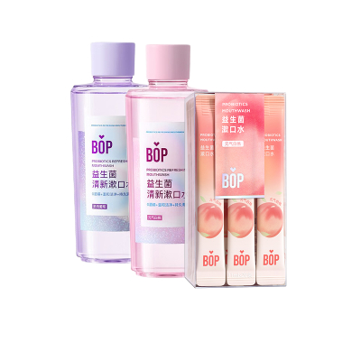 BOP波普专研益生菌清新漱口水元气白桃+多肉葡萄500ml*2+元气白桃20条11ml*20 豆沙色