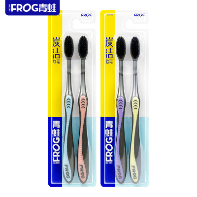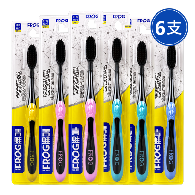青蛙软毛成人牙刷炭黑刷丝深层清洁异味独立包装家庭牙刷678 6支装 随机