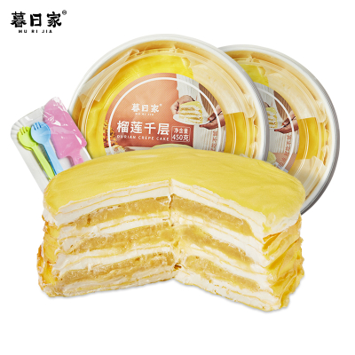 暮日家榴莲千层蛋糕450g*2个休闲零食盒子生日蛋糕冰皮奶油小蛋糕早餐下午茶 拿铁色 450g*2个
