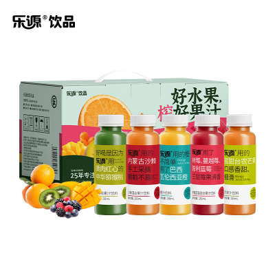 乐源 混合果汁礼盒255ml*10瓶(橙汁芒果汁猕猴桃汁树莓蓝莓汁沙棘汁各2瓶) 香槟金