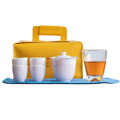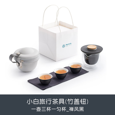 南山先生 旅行茶具套装便携包 小白快客杯1壶3杯【禅风黑】-红贵宝 单位:套 白色