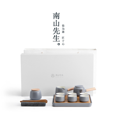 南山先生功夫茶具套装 莫兰灰双侧把套装+莫兰灰茶叶罐+莫兰灰四方茶盘(中号) 灰色