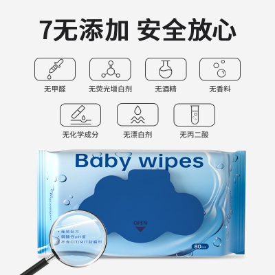 五月印象婴儿湿巾纸新生儿手口专用湿巾尺寸14*18cm,每包80片*3包(单位:包) 水蓝色