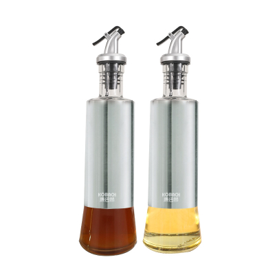 康巴赫(KBH)玻璃油壶防漏油罐按压式装油瓶子酱油醋壶调料瓶300mlx2支装【14050244】(单位:套) 不锈钢色