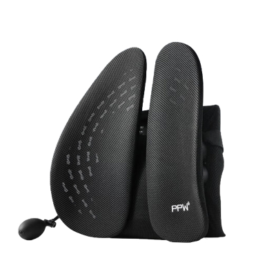PPW 人体工学腰垫汽车腰靠办公室靠垫减压车座腰枕座椅椅子四季通用 弹簧支撑-气囊调节款黑色单位:个 黑色