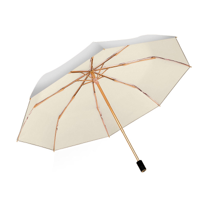 三极 TP7032 8骨晴雨两用双层黑胶三折伞 米白色