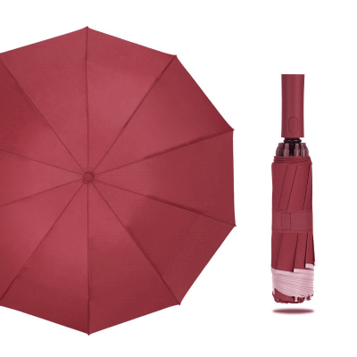三极 TP7399 10骨全自动反向伞 碰击布+反光条 单位:把 酒红色
