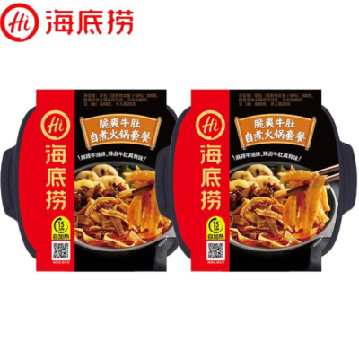 海底捞 自热火锅 方便速食 懒人食品零食小火锅 脆爽牛肚自煮火锅套餐435gx2盒 435g*2