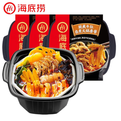 海底捞自热火锅 方便速食零食小火锅 脆爽牛肚自煮火锅套餐435g*3盒 435g*3