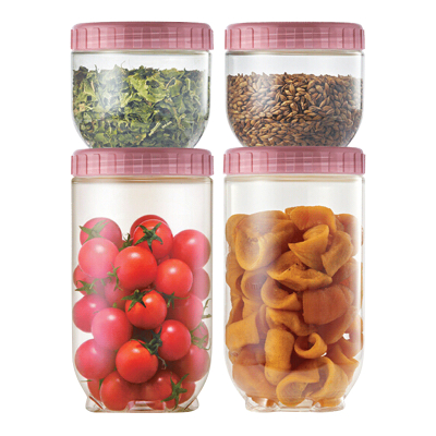 乐扣乐扣(Lock&Lock)新概念储物罐INL301S001(500ML*2个,1L*2个)(单位:套) 透明色(红色盖子)