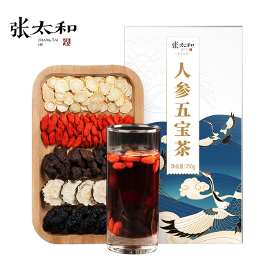 张太和始创于1915 人参五宝茶红枣黑玛咖黄精枸杞子桑葚人参茶男肾茶补茶男性八宝茶配方茶男人养生茶 250g 白色