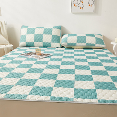 罗曼罗兰乳胶席三件套 棋盘格 180x200cm套 天蓝色 1.8米床