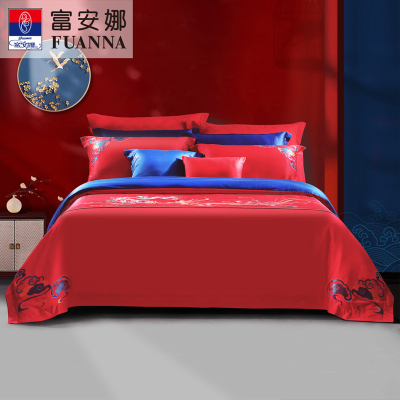 富安娜长绒棉抑菌婚庆六件套/龙跃凤鸣230*229cm/套 红色
