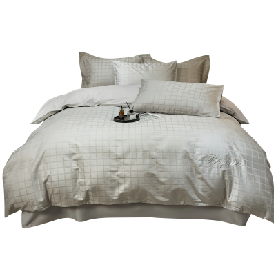 三极 TP2752 60支全棉提花刺绣飞边四件套 单位:套 晨白格 适用于1.8米床