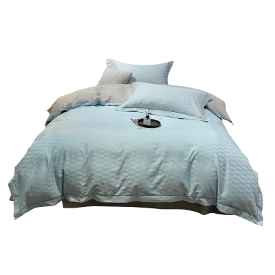 三极 TP2752 60支全棉提花刺绣飞边四件套 单位:套 合欢格(浅蓝) 适用于1.5米床
