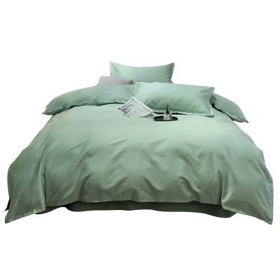 三极 TP2752 60支全棉提花刺绣飞边四件套 单位:套 线条(浅绿) 适用于1.8米床