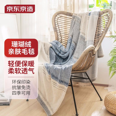 京东京造 100006940965 180*200cm蓝色 珊瑚绒毛毯盖毯几何纹 个 蓝色