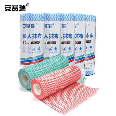 安赛瑞 可撕无纺布免洗抹布 厨房洗手间干湿两用 10496 5卷装50张每卷 多色混合发货