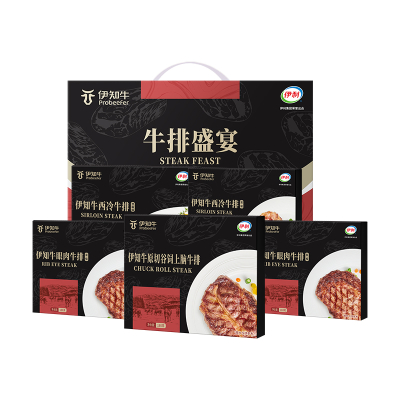 伊利·伊知牛精品牛排盛宴900克B398型礼盒 红色